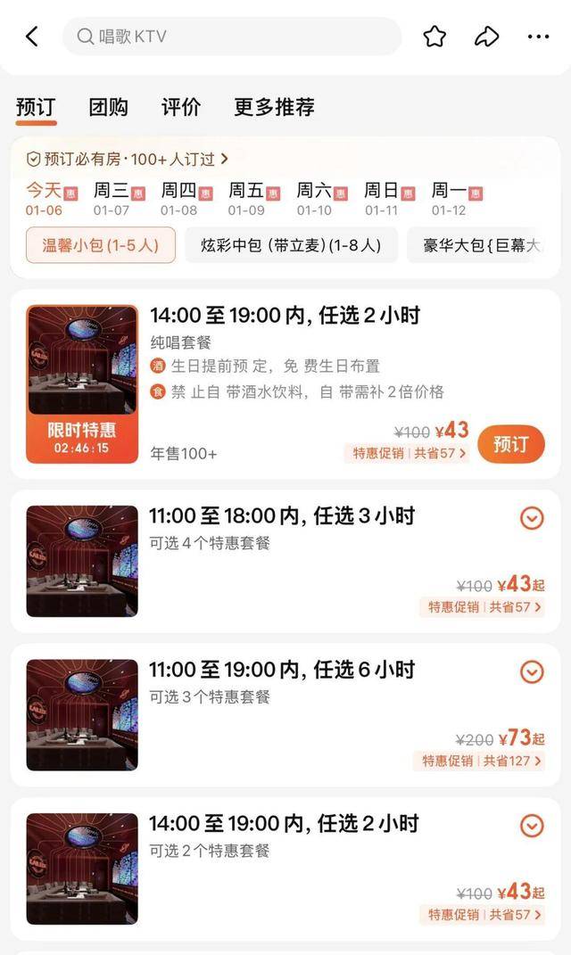 记者检索平台上,不少KTV下午时段价格相对低廉