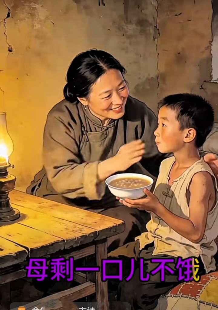 昏黄的油灯下,斑驳的土墙前,母亲将碗中仅存的热粥,一勺一勺吹凉,送入孩童口中。她眼神温柔似水,仿佛看着世间最珍贵的宝物,全然忘却自己腹中的饥鸣。那“母剩一口儿不饿”的情景,是母爱最原始、最本能的写照——倾其所有,只愿你温饱无虞。