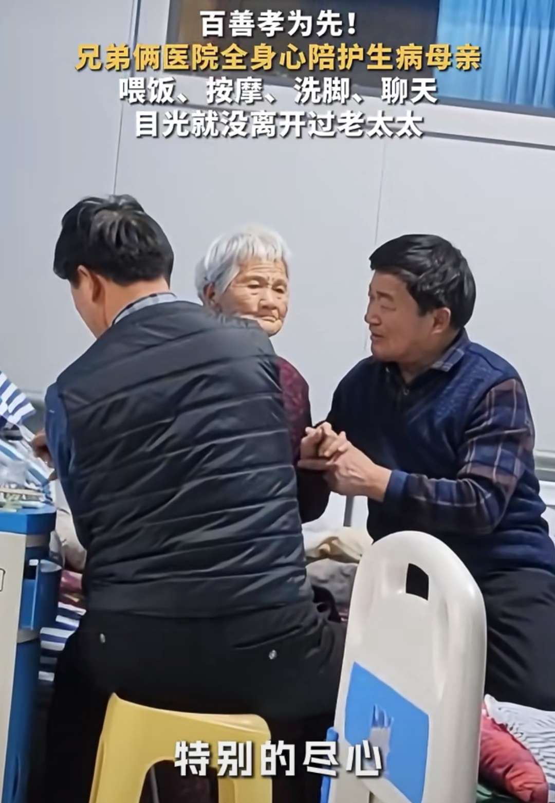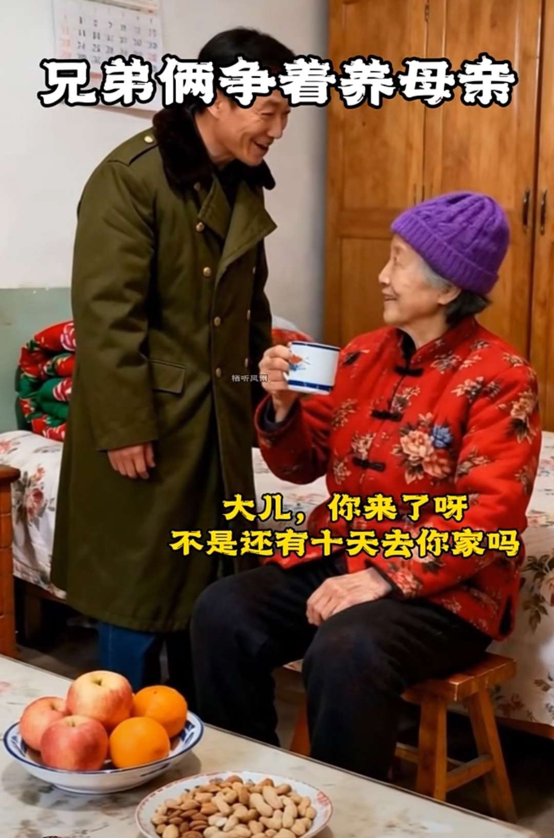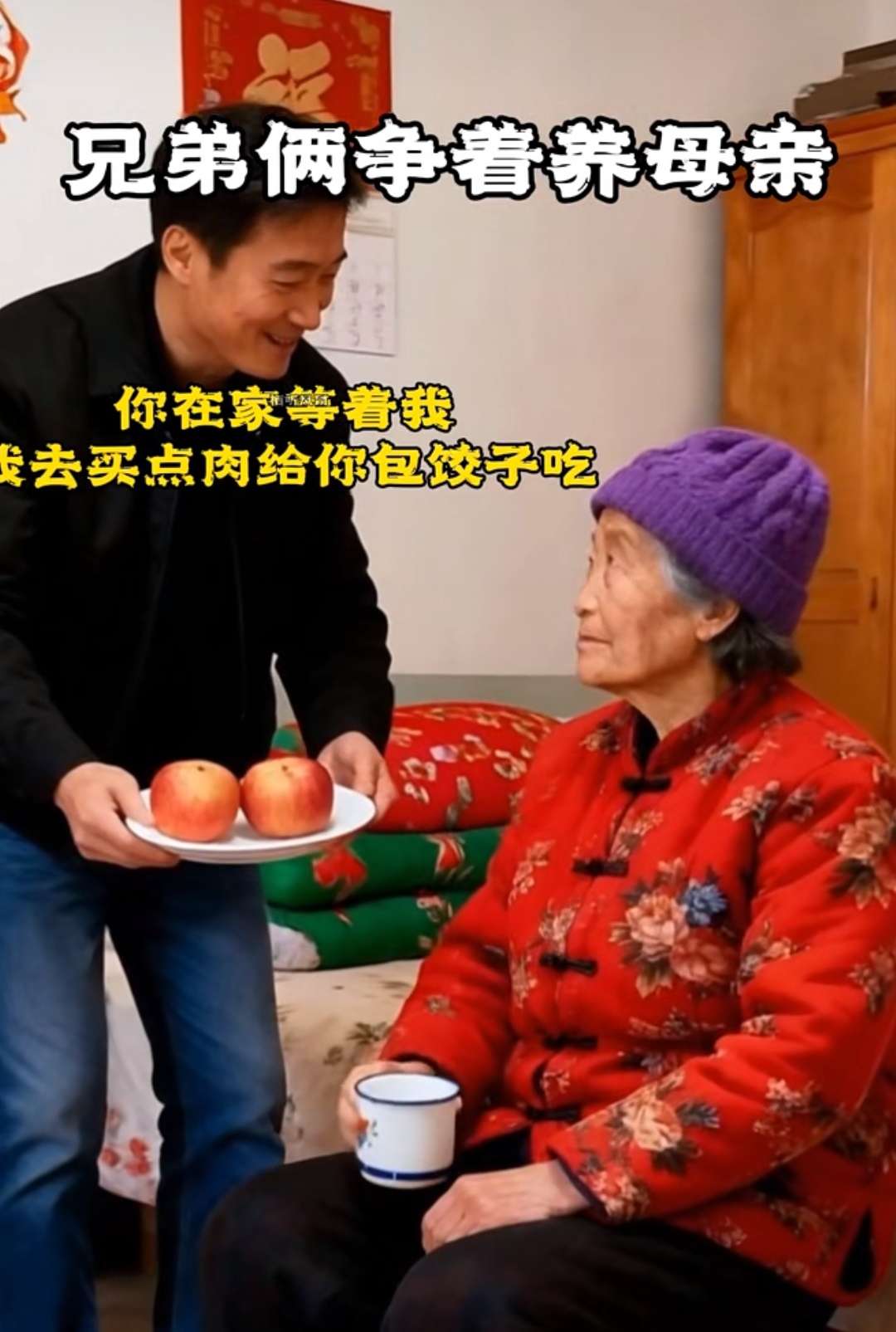 兄弟争迎老母亲,堂前笑靥暖冬晨。