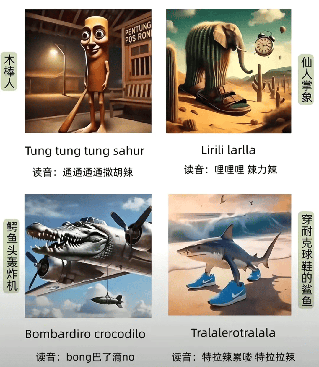 “耐克鲨”“大香蕉一条大香蕉”“通通通通撒胡辣”“特拉辣累喽特拉拉辣”……每个字都认识,拼凑在一起后,就完全不知所云。